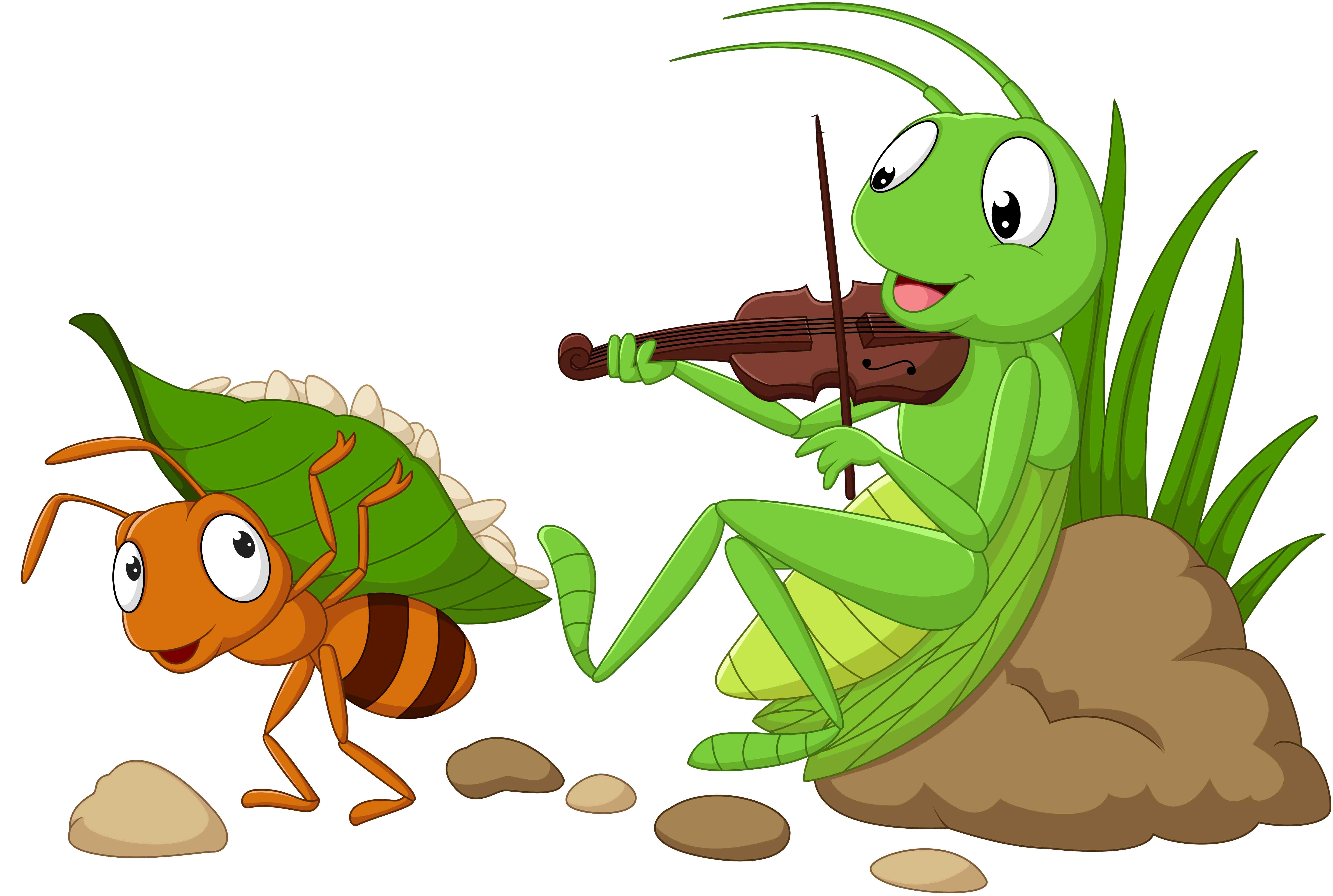 Durante todo un verano, una cigarra se dedicó a cantar y a jugar sin preocuparse por nada. Un día, vio pasar a una hormiga con un enorme grano de trigo para almacenarlo en su hormiguero.