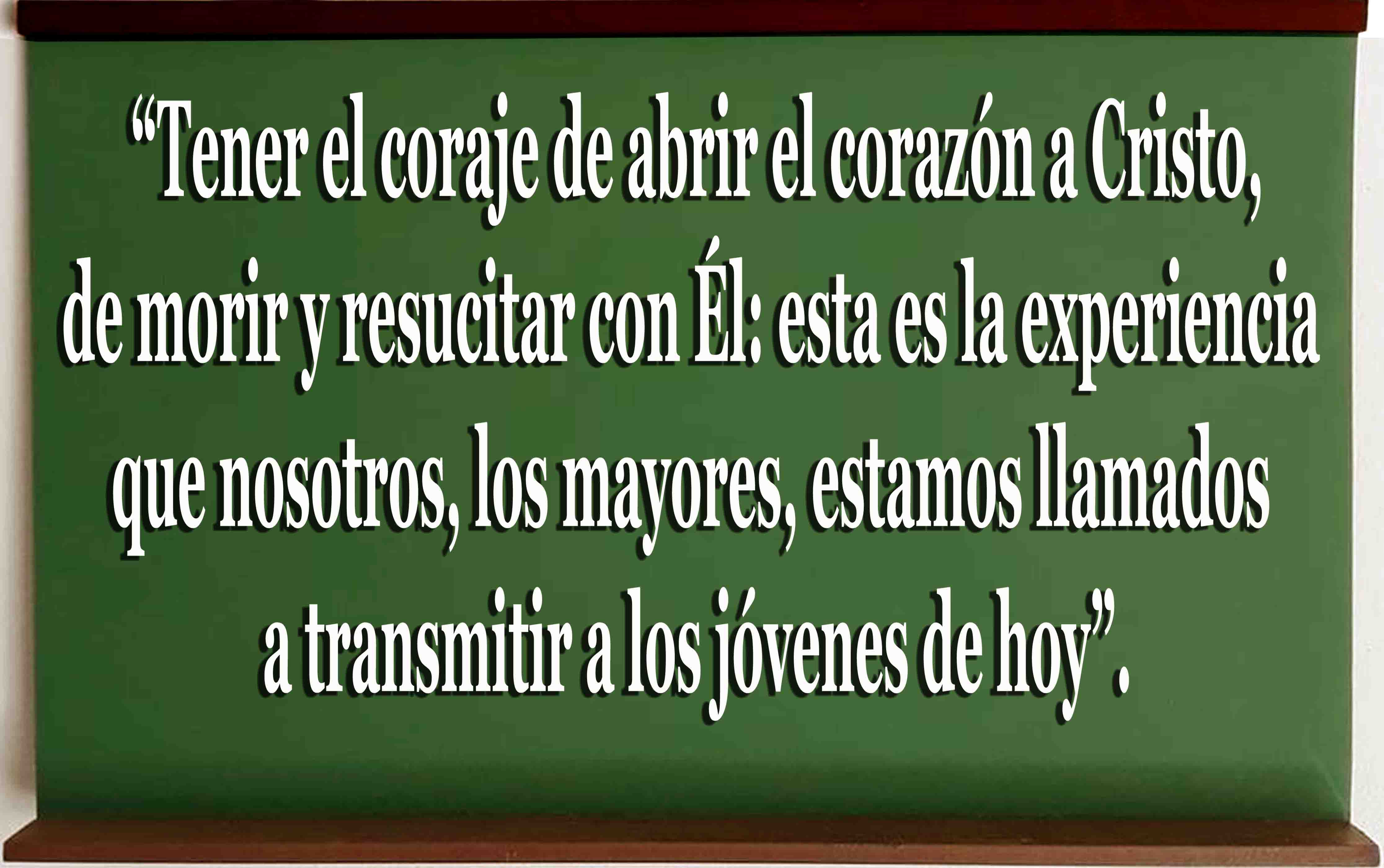 Tener el coraje de abrir el corazón a Cristo, de morir y resucitar con Él: esta es la experiencia que nosotros, los mayores, estamos llamados a transmitir a los jóvenes de hoy. Este es el mensaje del Señor que invita a vivir la belleza de quien ha vencido su batalla, de quien ha permanecido fiel, de quien ha tenido el coraje de dar la vida, para llegar a superar todo lo que impide ser bello como Cristo: el más bello entre los hijos del hombre.