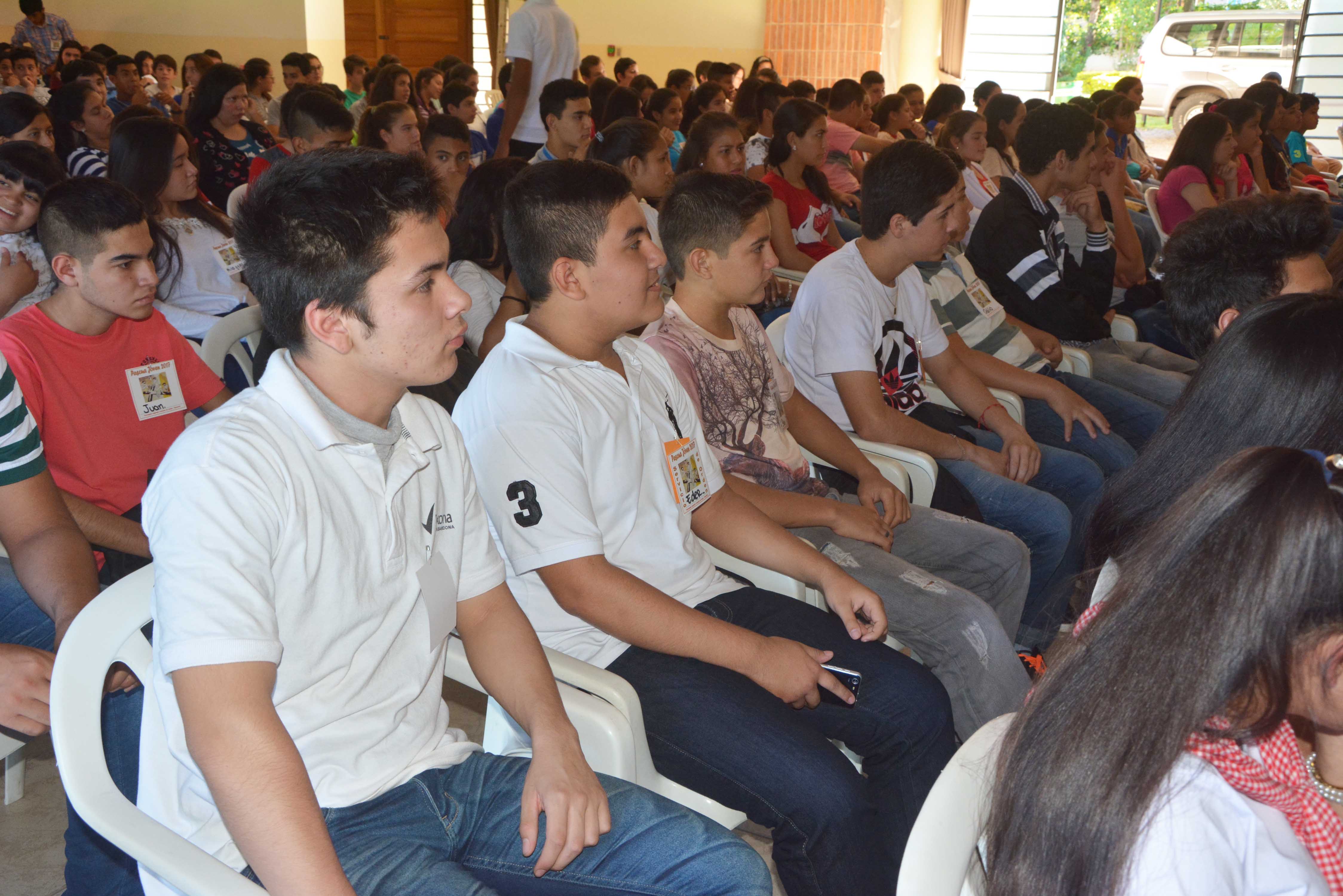 Dans la paroisse Sagrado Corazón de Jesús d’Ypacaraí, il y a eu aussi cette année une forte participation de jeunes : d’abord ceux inscrits aux trois ans de préparation au sacrement de la confirmation, mais aussi ceux qui ont déjà reçu ce sacrement et qui saisissent cette opportunité pour passer, avec leurs amis, des moments de réflexion, de prière, d’approfondissement de la foi, mais aussi d’amitié et de rencontre. La Pascua Joven, en effet, dans notre paroisse, est désormais caractérisée par son sérieux et son organisation, et par son contenu aussi, ce qui offre aux jeunes la possibilité d’écouter des discours qui les rappellent à l’essentialité de la vie et de la foi, à la responsabilité de bien vivre le présent, pour construire leur avenir en tant qu’hommes et chrétiens authentiques.