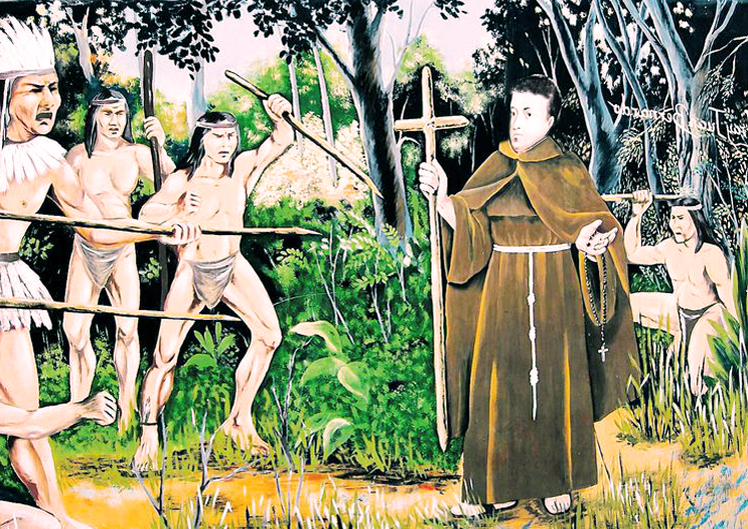 Questi lo circondarono e, in tono minaccioso, pretesero una prova del potere del Dio in nome del quale parlava, dicendogli in lingua guaranì: “Se è vero che il tuo Dio esiste, vogliamo vedere un suo miracolo: fai sorgere qui l’acqua o morirai a frecciate”.